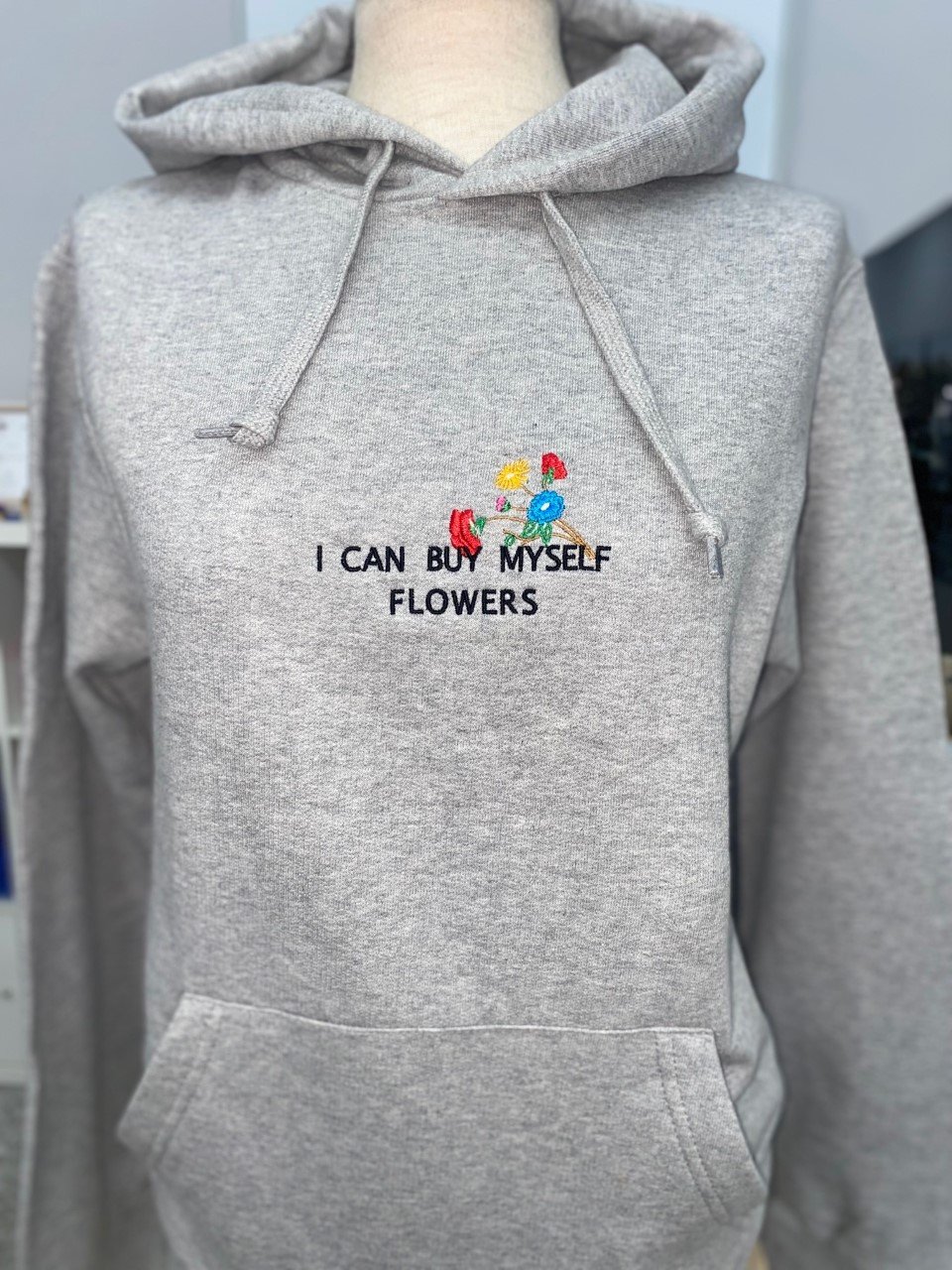 SUDADERA CON CAPUCHA Cotton Rich con bordado »I can buy myseft flowers: 280 gramos, 80% algodón peinado ring spumy peinado y 20% poliéster, Manga montada, puños y cintura elástica. Tallas: XS / S / M / L / XL (para otras tallas consultar disponibilidad y plazo de entrega)